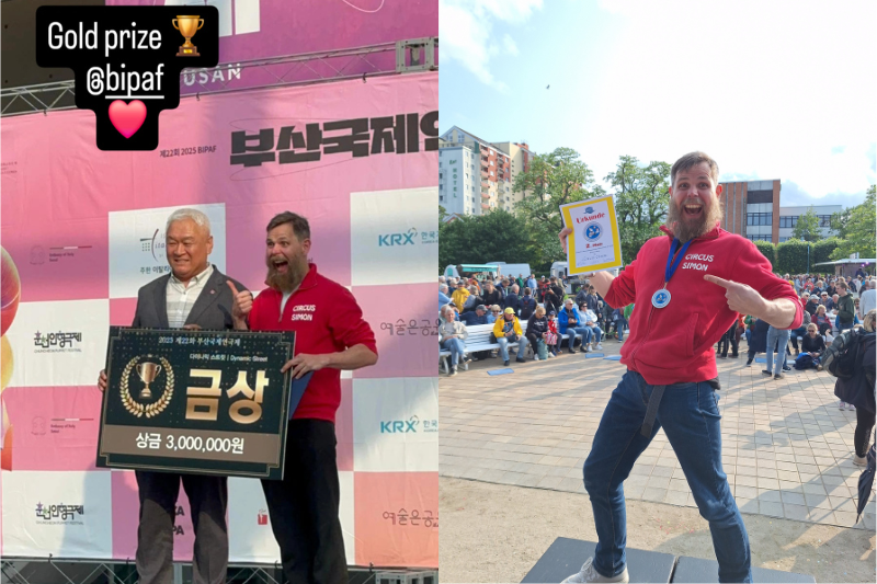 Simon Llewellyn pokkasi palkintoja Suomeen katusirkusesityksellään →