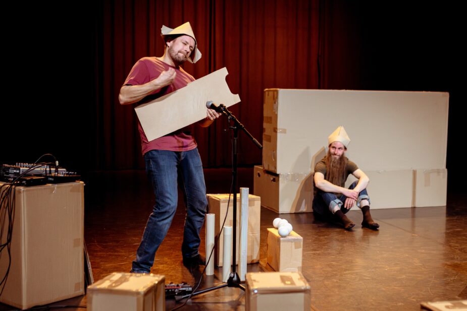 Boxing vie katsojan mielikuvitukselliselle tutkimusmatkalle pahvin maailmaan. Kahden taidokkaan jonglöörin leikeissä arkisesta materiaalista rakentuu mitä ihmeellisempiä hahmoja, maisemia ja tarinoita.