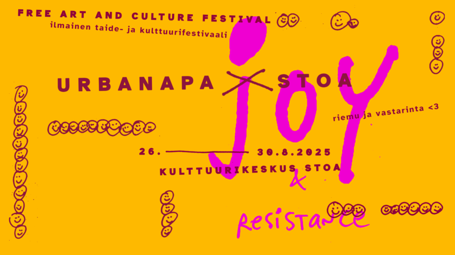 Tänä vuonna UrbanApa palaa Stoaan 26.-30.8.2025 järjestettävän UrbanApa x Stoa -festivaalin myötä. Tapahtuma kokoaa yhteen urbaanin nykytaiteen koko kirjon ja viiden päivän ajan kulttuurikeskus Stoassa kuka tahansa pääsee nauttimaan moninaisista taustoista tulevien ammattitaiteilijoiden sekä muiden kulttuurivaikuttajien yllättävistä, monitaiteisista ja leikkisistä esityksistä.